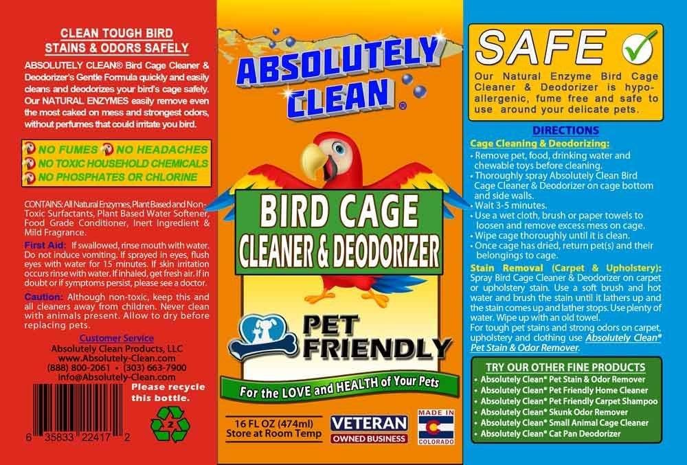 - WORKS GREAT ON UPHOLSTERY: Absolutely Clean Amazing Bird Cage Cleaner is extremely versatile. It is a powerful pet enzyme cleaner to remove the toughest pet stains and pet odor from all of your indoor upholstery and patio furniture as well as your hardscapes. Thoroughly cleaning and refreshing your outdoor living spaces with all purpose cleaner, so you can relax and enjoy, no matter what nature throws your way.