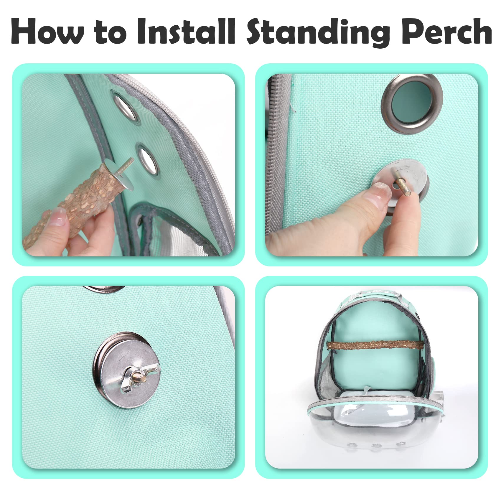 - Multi-functional & Fully Equipped: The bird perch can be disassembled and the pet travel backpack also can be used to take cats, dogs, rabbits, mice, lizards, hedgehogs and other small pets. Package includes 1* Bird Backpack; 1 *Soft Mat; 1 *Standing Perch; 1 *Bird Feeding Cups; 1 *Stainless Steel Tray; 1 *Bird Toy