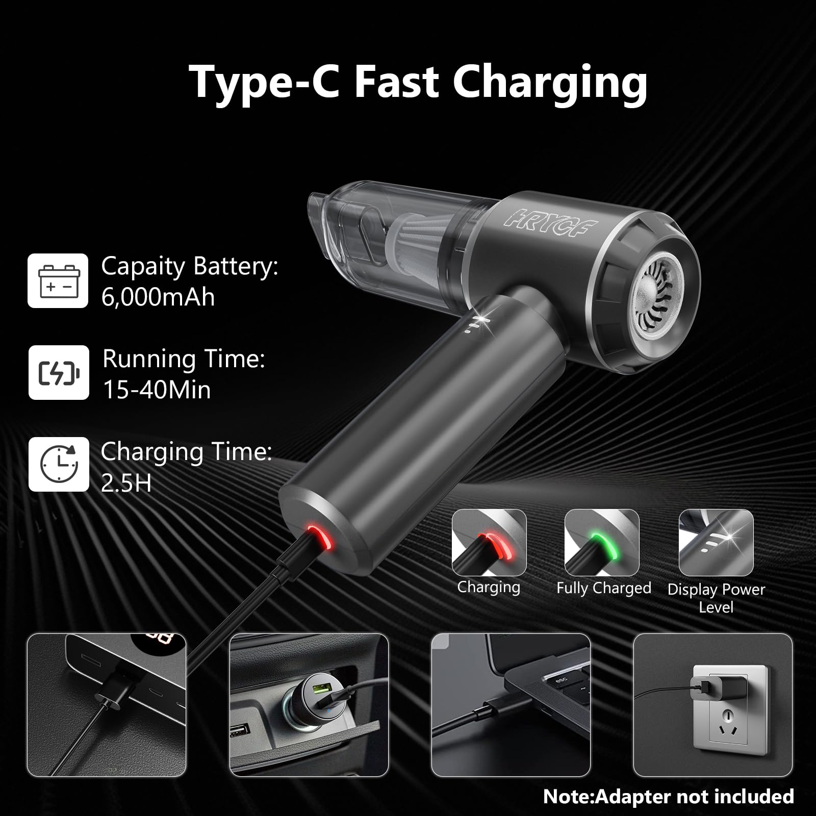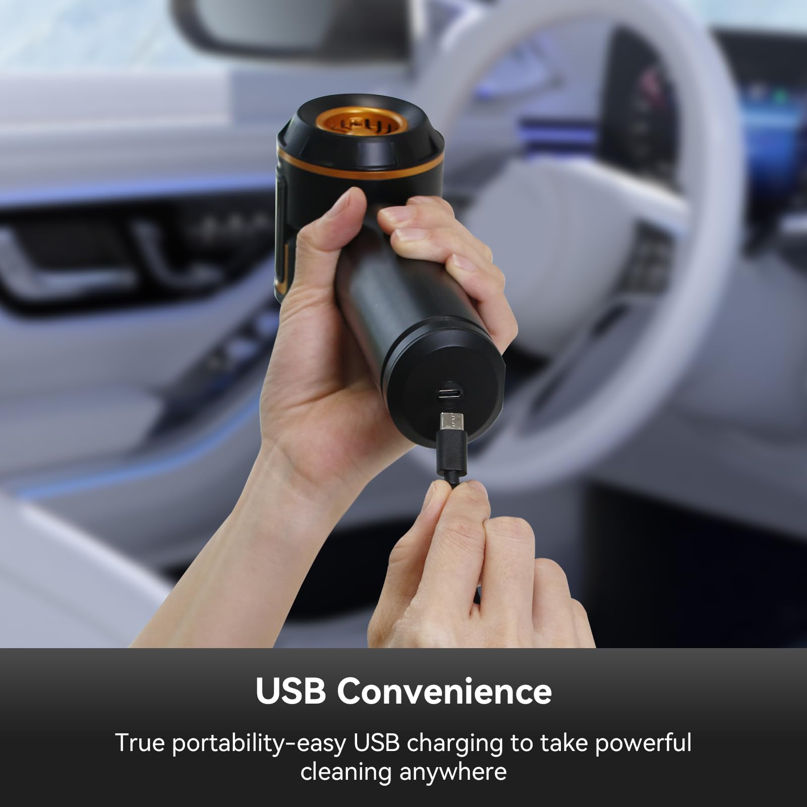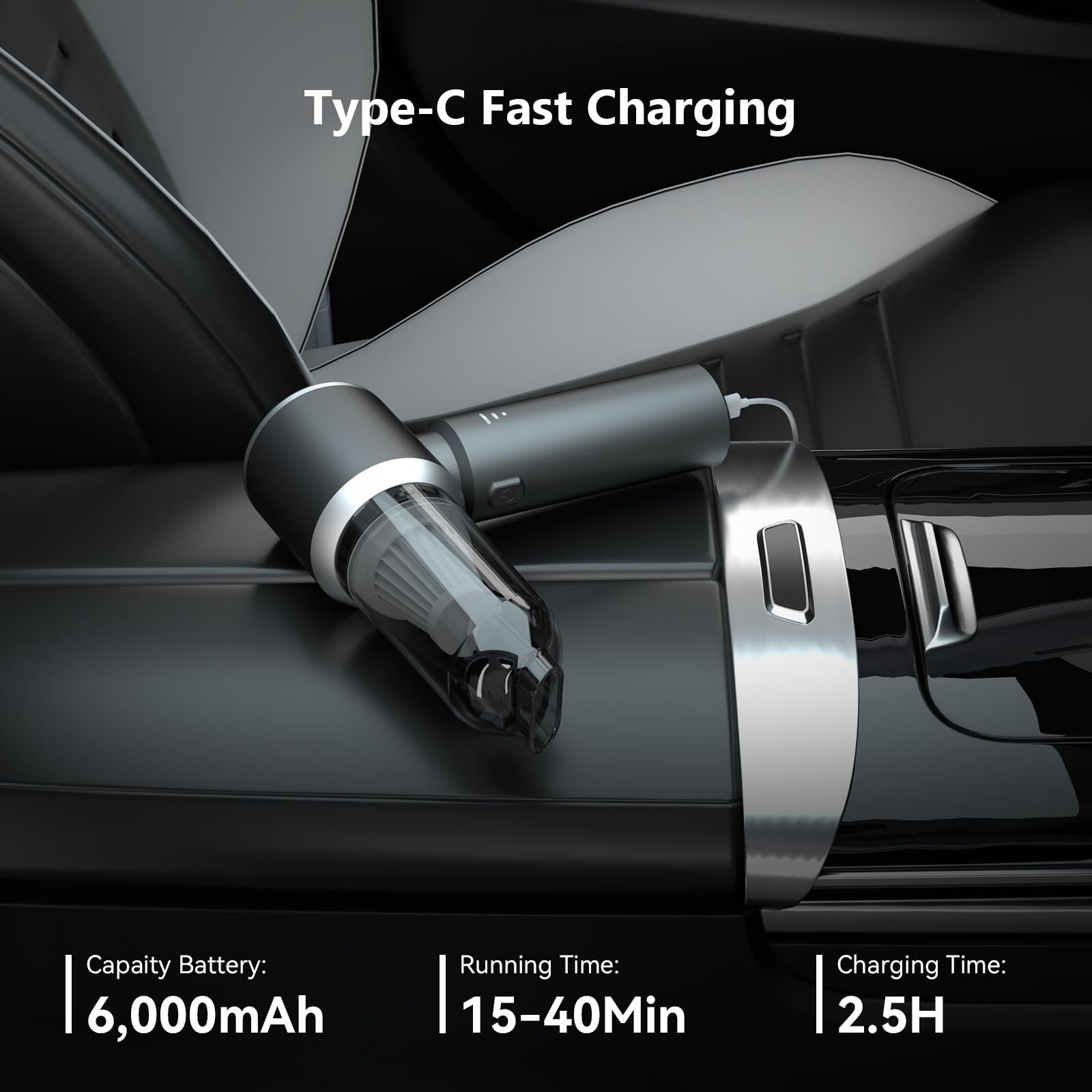 - 【Cut the cord】This WIRELESS car vacuum gives you ultimate cleaning freedom. Powered by convenient Type-C charging – no outlet needed! Effortless car vacuum portability. Say goodbye to cord hassles. Experience the future of clean with this essential WIRELESS car vacuum – YOUR perfect car vacuum!