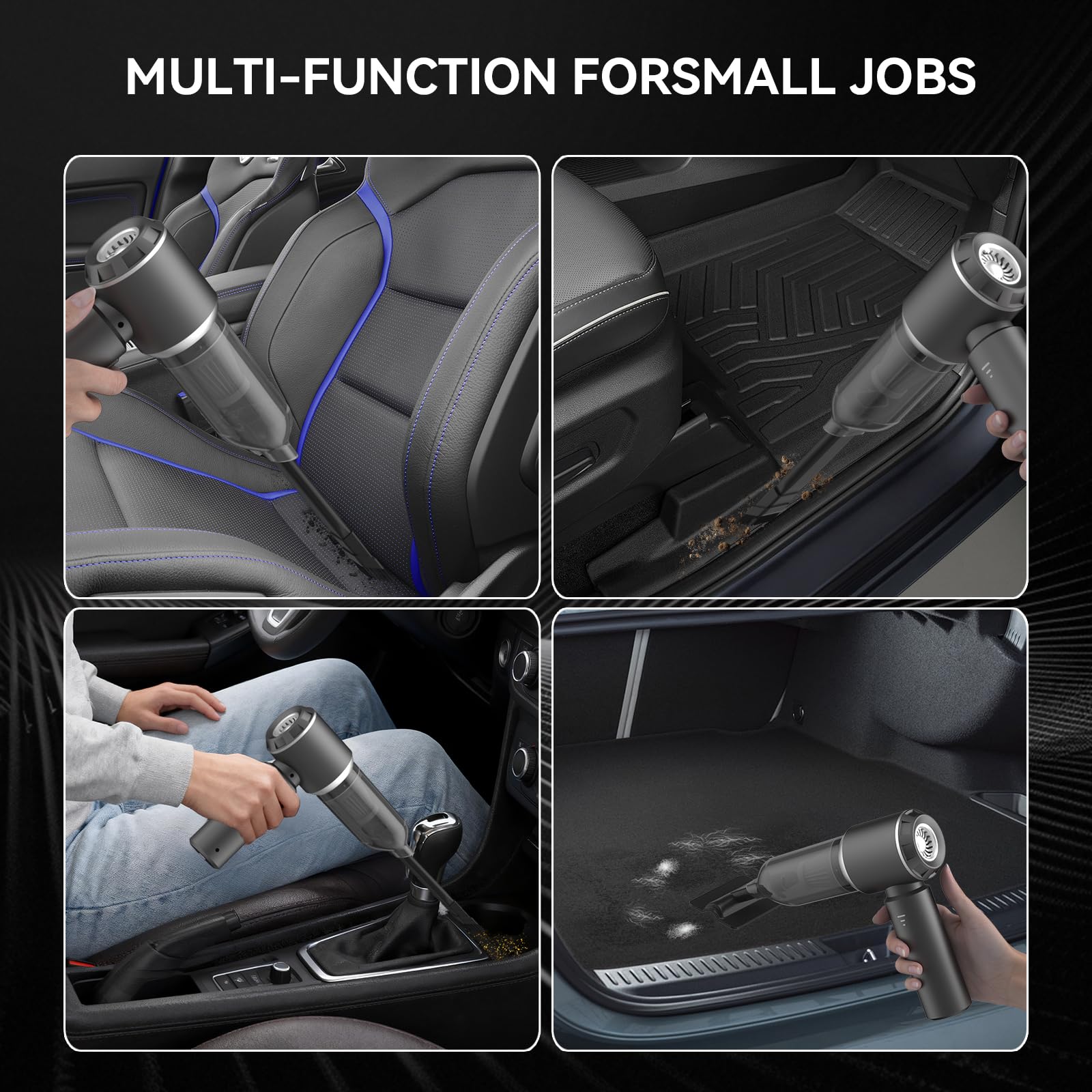 - 【Powerful Car Vacuum】Experience 20,000Pa STRONG suction. This car vacuum cleans seats, carpets & nooks EASILY. Your essential Car Vacuum for a spotless ride! Get MAXIMUM cleaning power. Own the ultimate Car Vacuum today!For the first use, fully charge the battery before use.