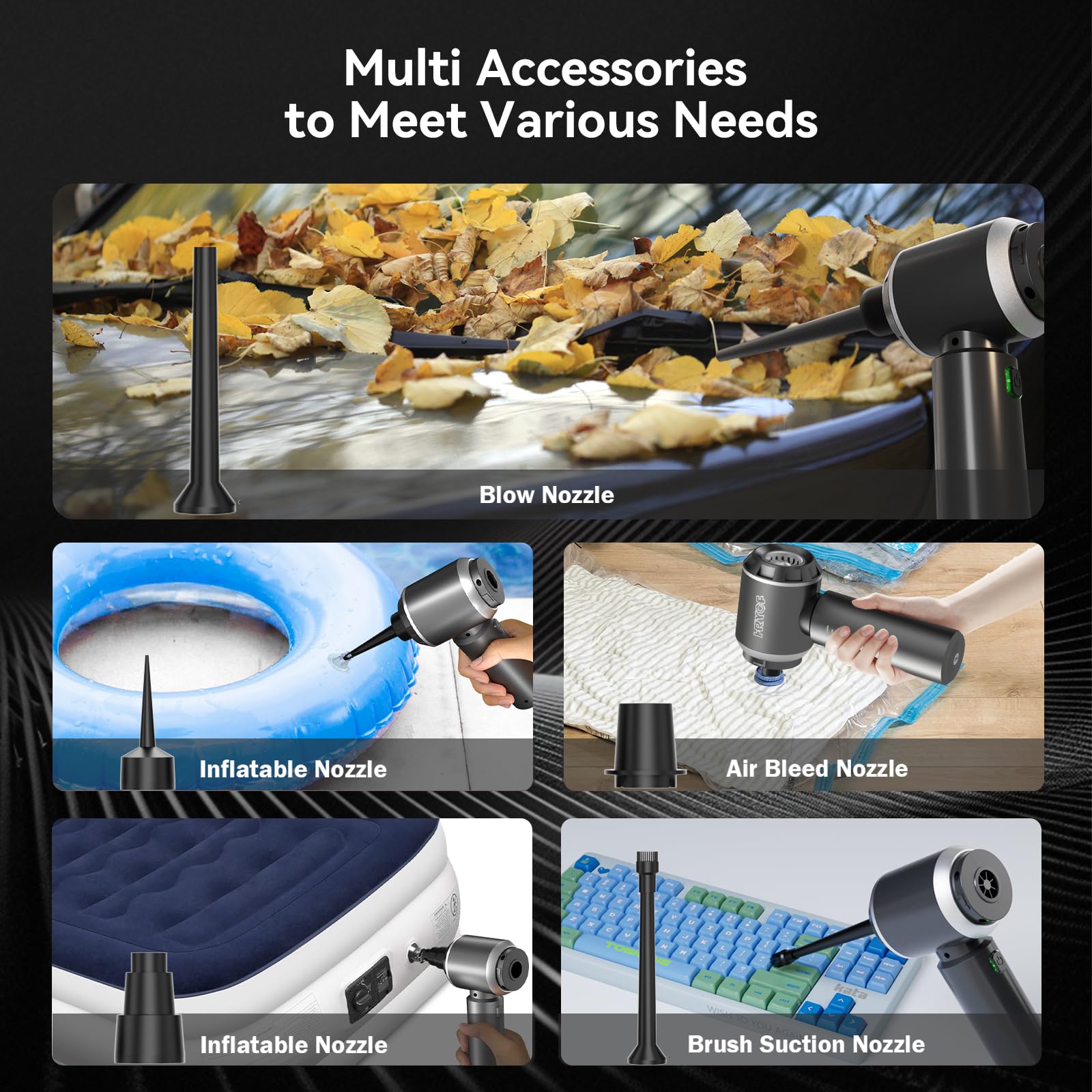 - 【4-in-1 Versatility Vacuum】This versatile car vacuum SUCTIONs, BLOWs, INFLATEs & BRUSHES! 12 essential tools handle ANY mess. Tackle dust, inflate tires, blow debris & deep clean! Your all-in-one car vacuum solution. The MOST capable car vacuum for EVERY need!