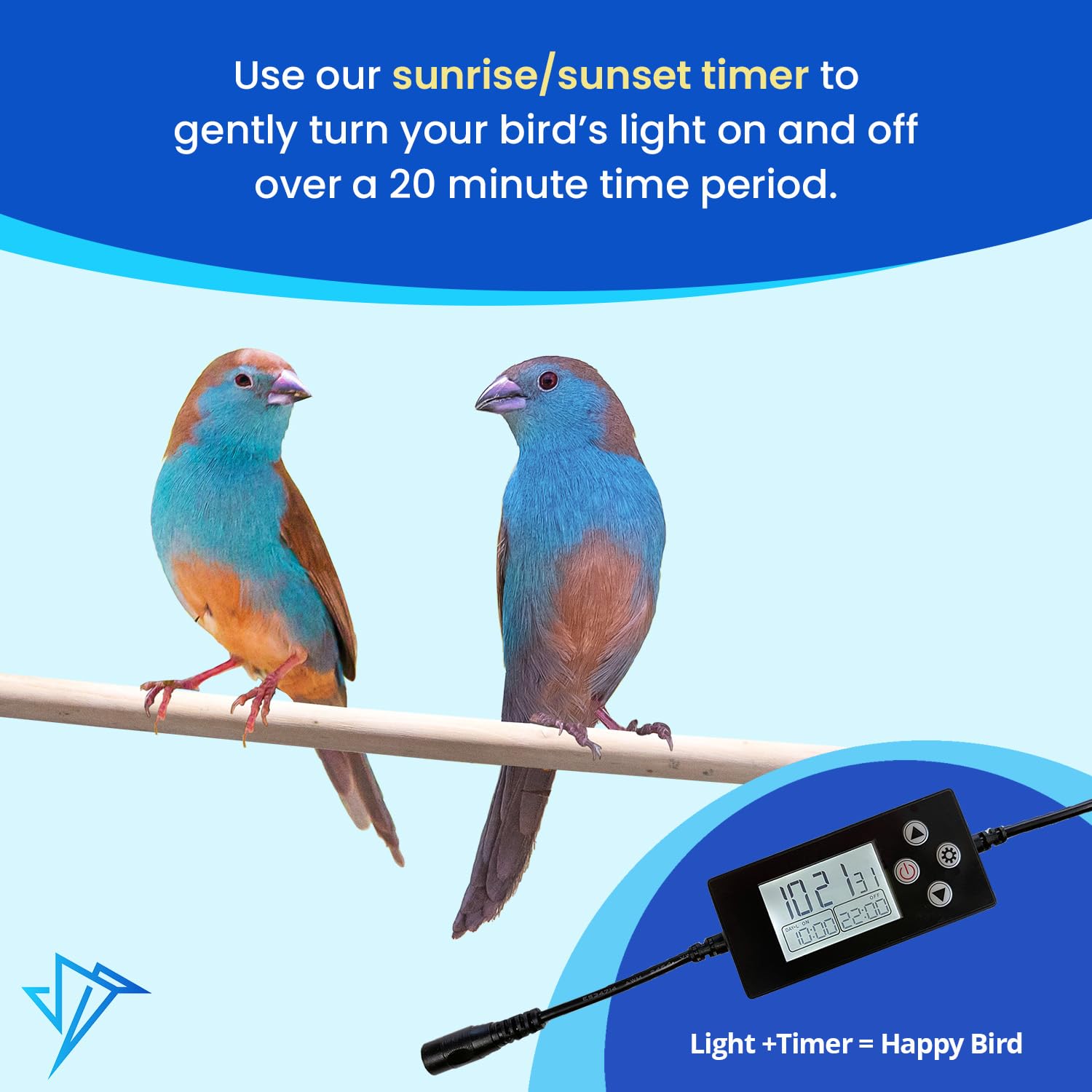 - ALLOWS YOU TO SIMULATE NATURAL PHOTOPERIOD: In nature, birds experience a cycle of light. This natural photoperiod triggers and regulates hormones in birds. Our scientifically developed birdcage light mimics these photoperiods by using consistent lighting intervals when connected to a timer for happier birds.