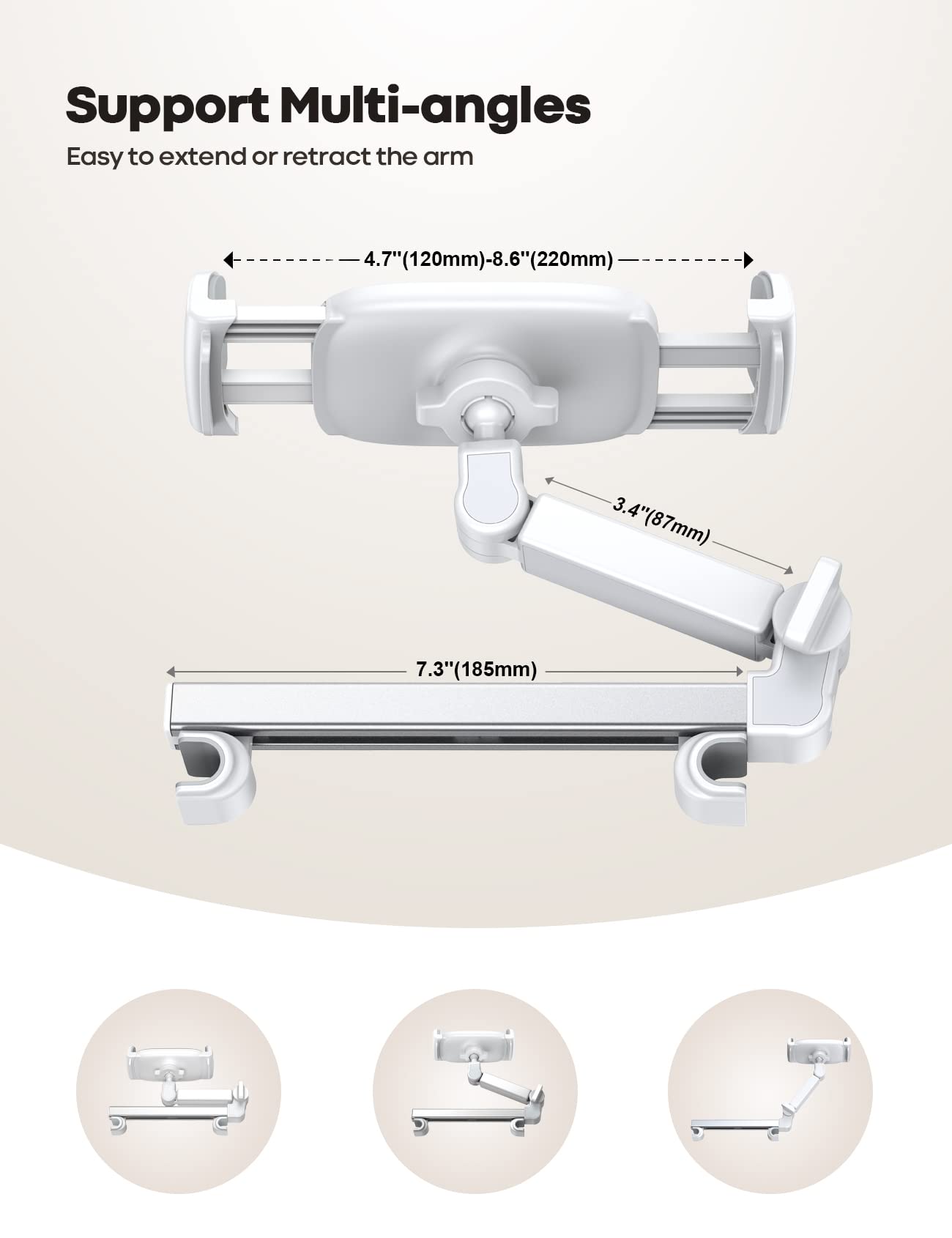 Lamicall Car Headrest Tablet Holder - [3 in 1 Extension Arm] Adjustable Tablet Car Mount for Back Seat, Road Trip Essentials for Kids, for 4.7-11" Device Like iPad Pro, Air, Mini, Galaxy, Fire, Black