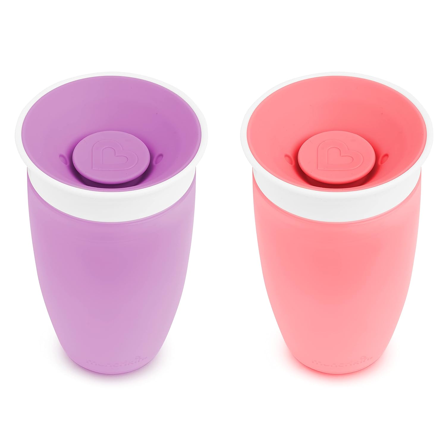 Munchkin Sippy Cups for Toddlers 1-3, Spill Proof Miracle 360 Cup, 10 Ounce, 2 Pack, Pink/Purple