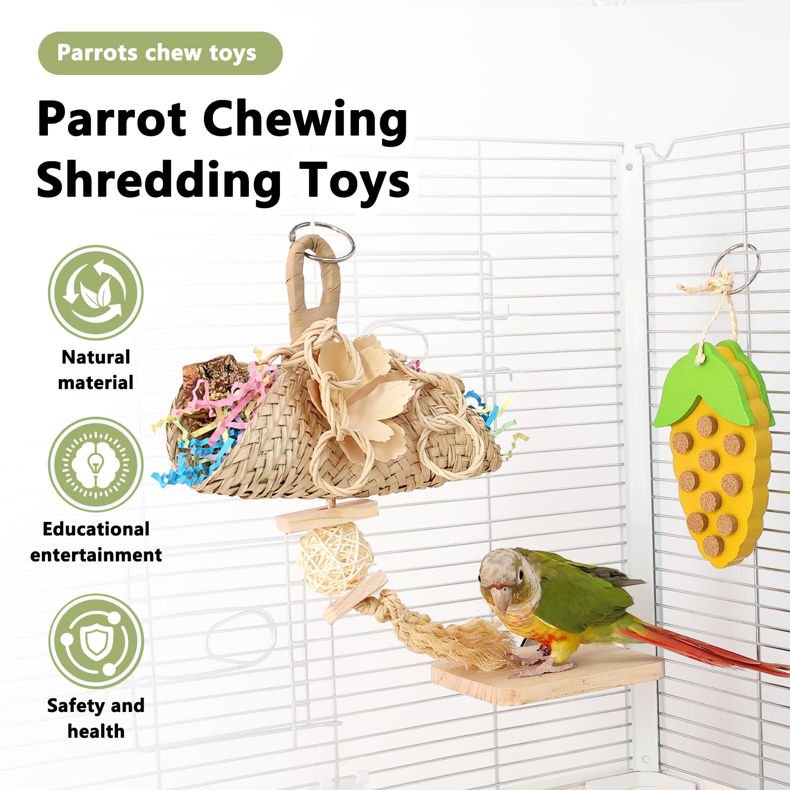 - ā Blend of Natural Safe Materials: Our toys are made from a safe blend of wood slices, natural loofah, solid wood, cork, bamboo weave, and shredded paper. Featuring plant-based dyes, they are non-toxic and designed for safe chewing to satisfy your bird's natural instincts.