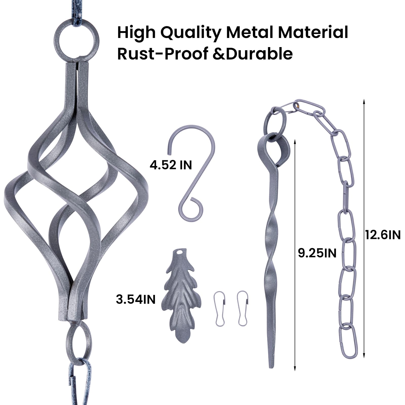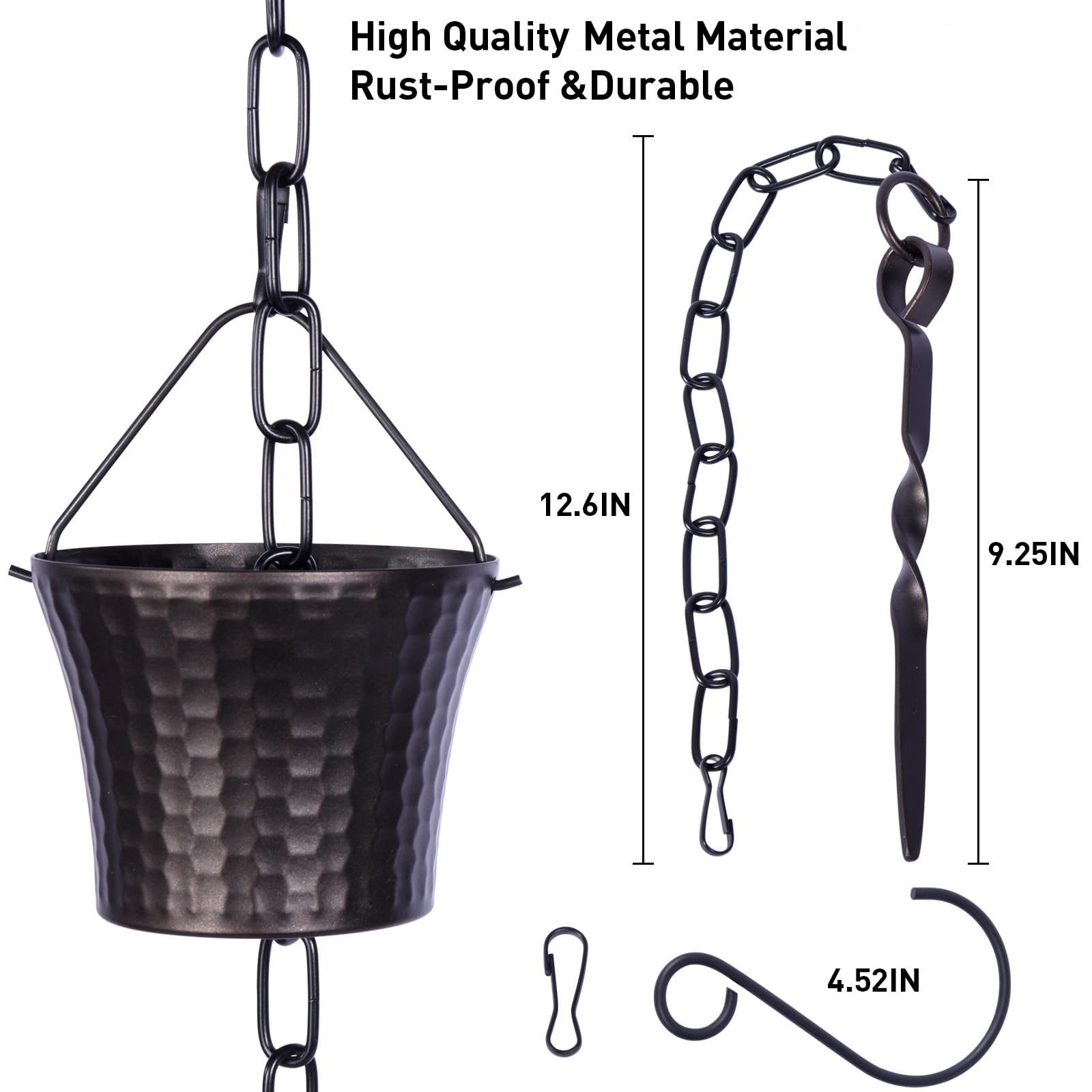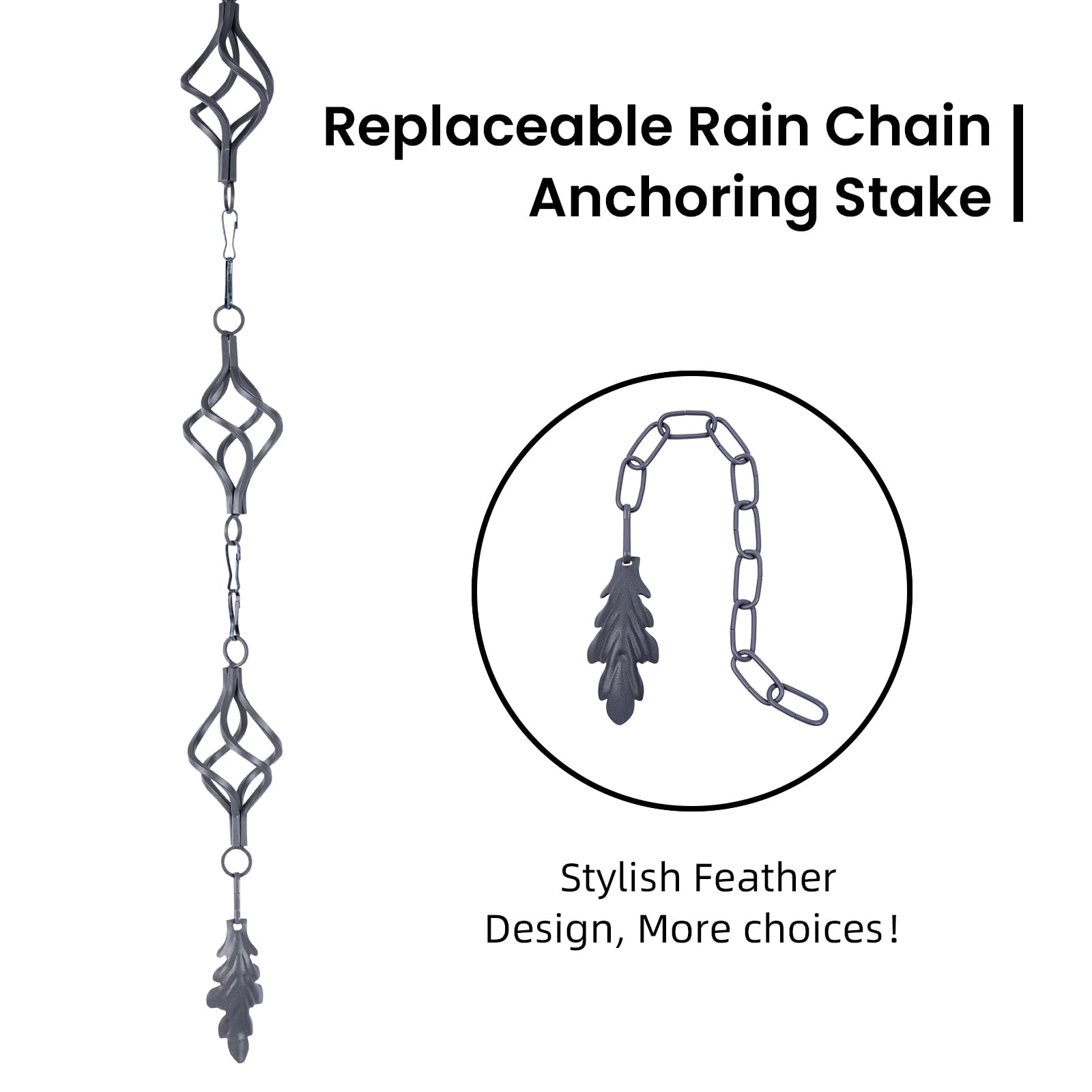 - Rain chain Easy to Hang: It includes an additional 3.9" wide hanger and an anchoring stake to easily remove these rain chains from any tree, window pane or patio, or set them on your drain, or hang them in a place where they can handle large amounts of water