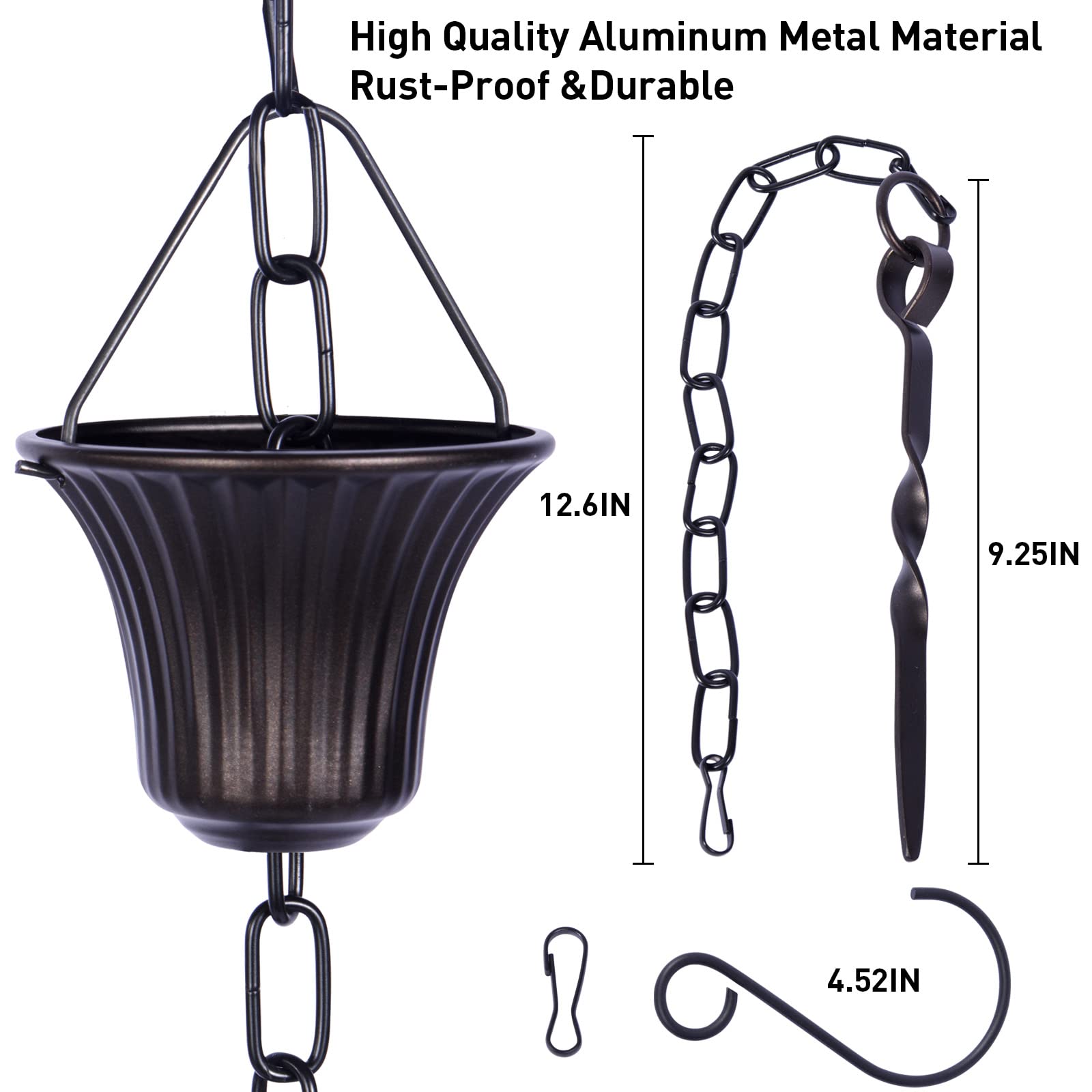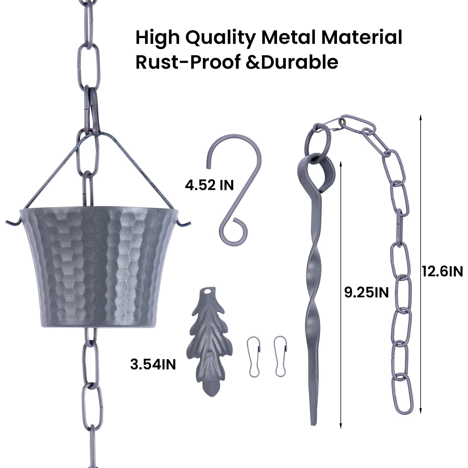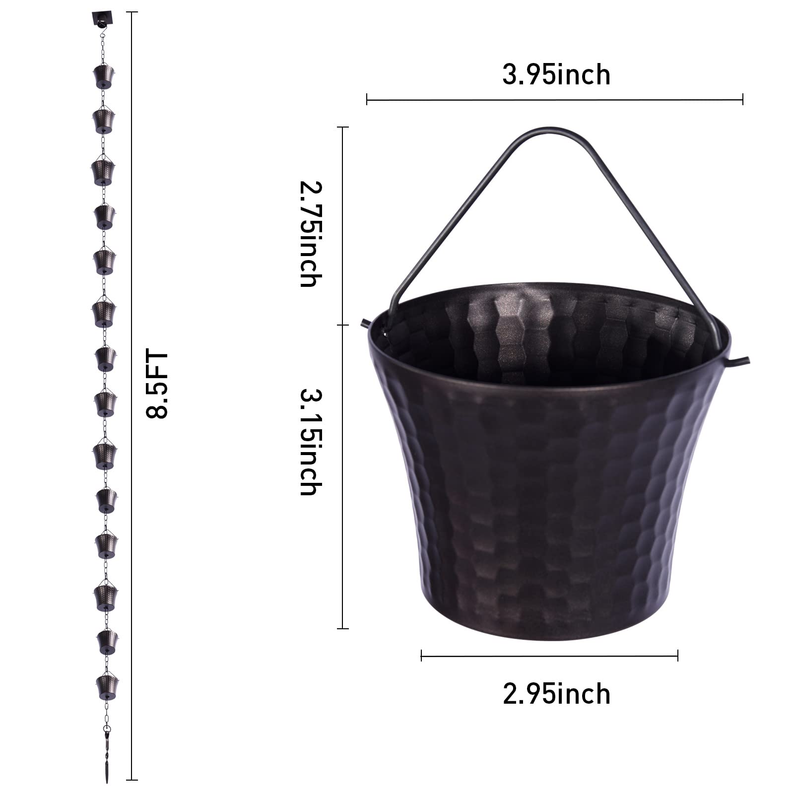 - Rain chain Easy to Hang: It includes an additional 3.9" wide hanger and an anchoring stake to easily remove these rain chains from any tree, window pane or patio, or set them on your drain, or hang them in a place where they can handle large amounts of water