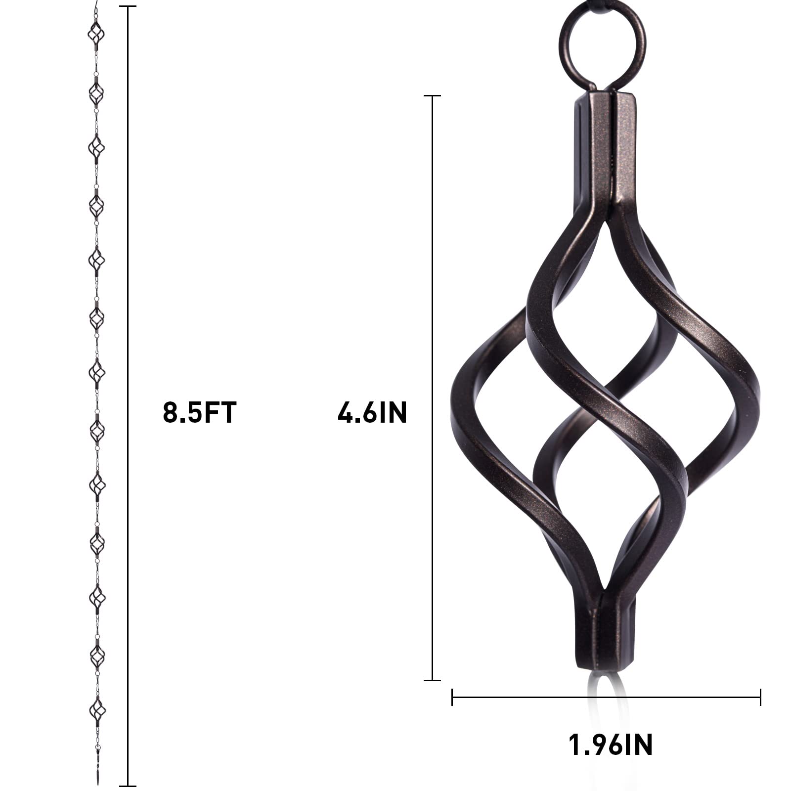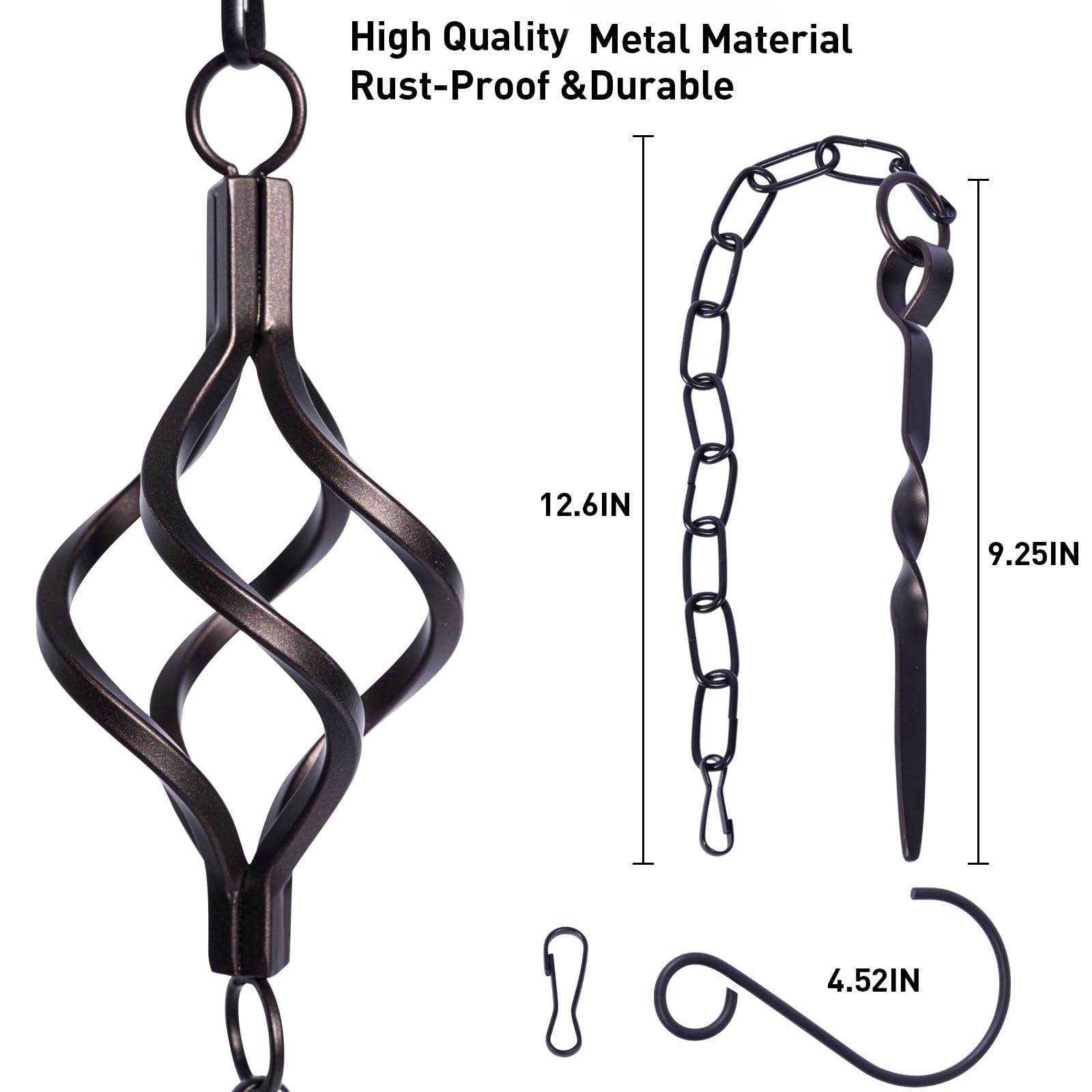- Fashionable Birdcage Shape Rain Chain Design: Decorate your garden with rain chains for gutters, more than an art of garden. The rain chains for gutters has combined both its functions and appearance, from which the superior copper and iron garden rain collector guarantees the outstanding durability, and the accurate cumulative radius of rain chain in the sewage pipe.