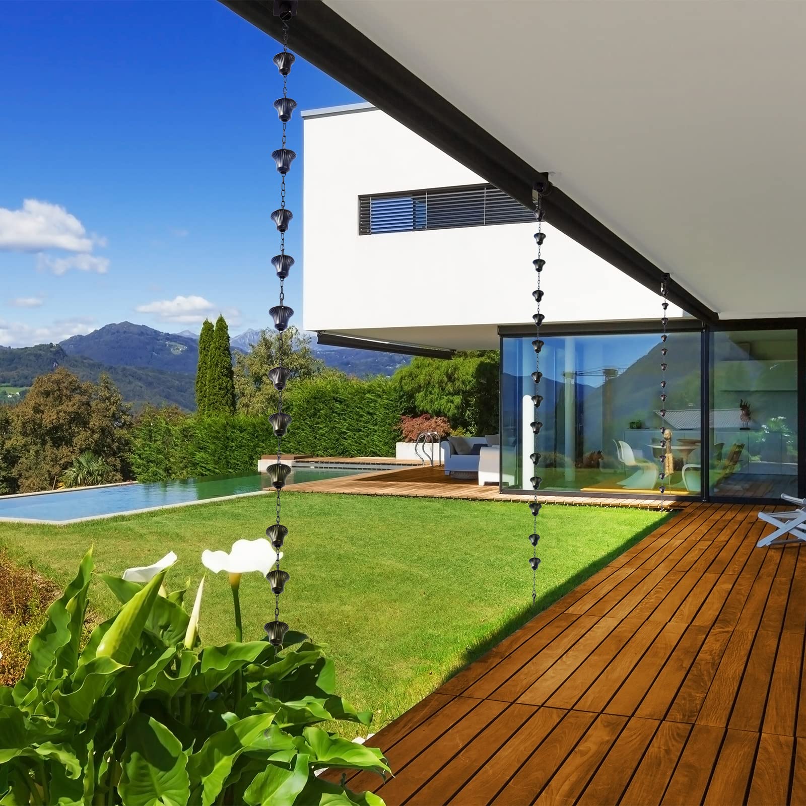 - Functional Downspouts: The rain chains for outside can be used as an alternative to traditional downspouts or simply as a decorative hanging garden ornament to create a gorgeous vertical water feature.