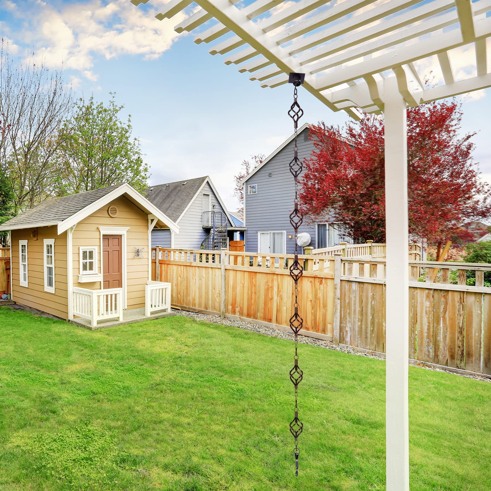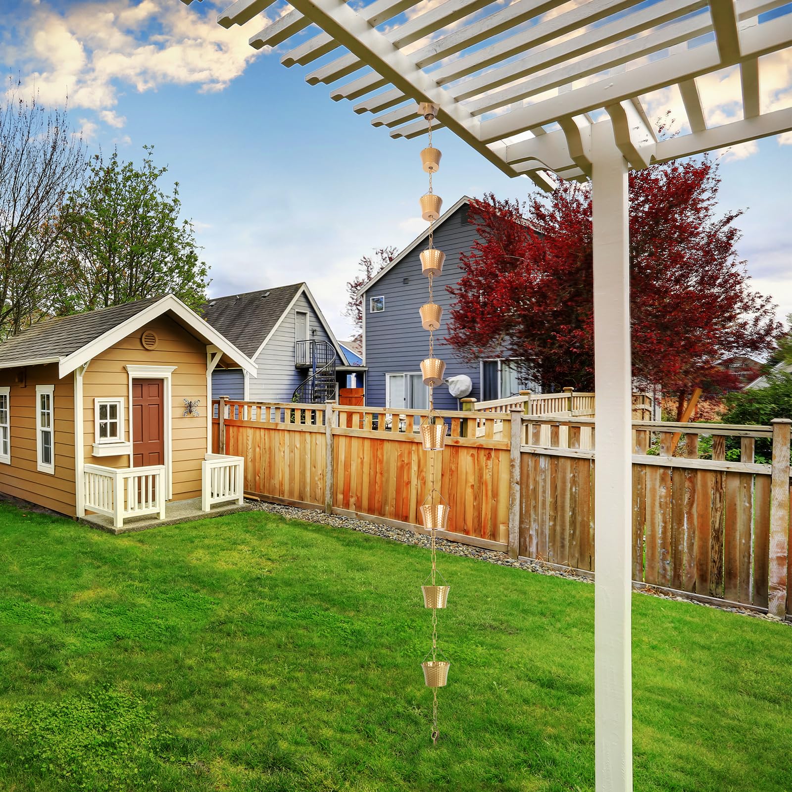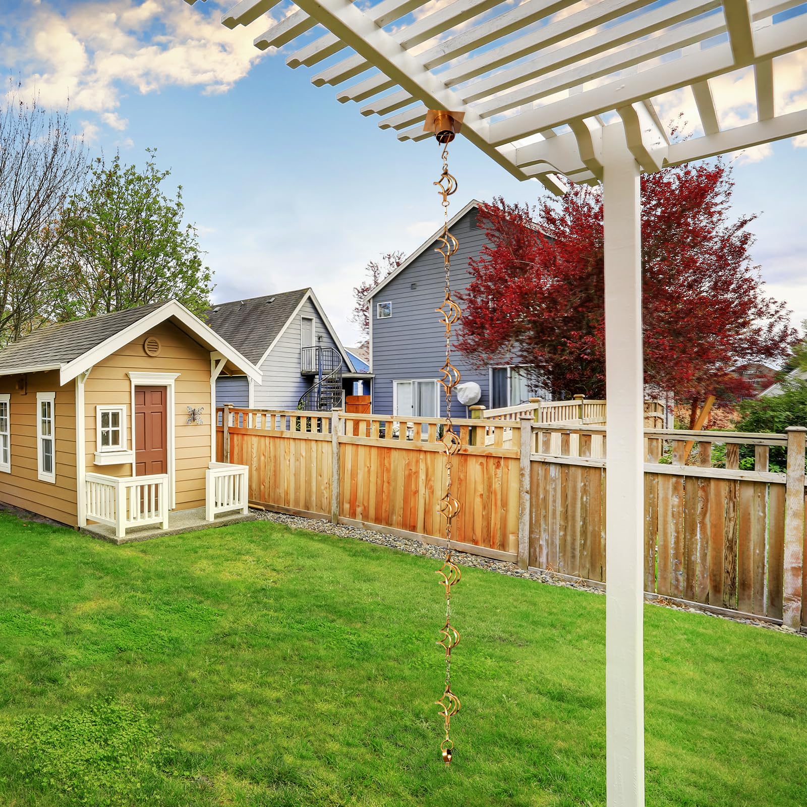 - Rain Chain Creative:A decorative item for gazebos, garden sheds and patios, and a great gift for gardening friends.If you don't exactly like copper rain chain what you've purchased, just return it for an easy refund.