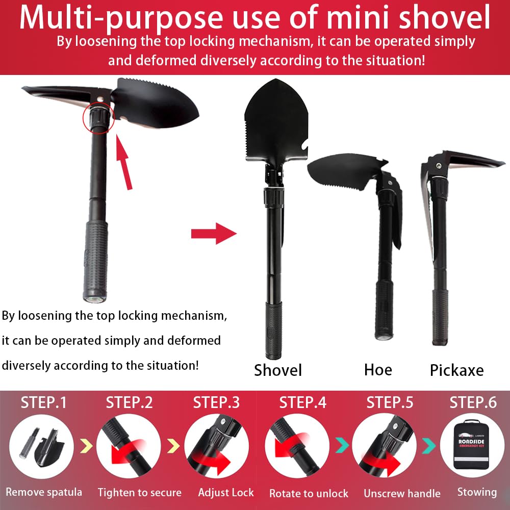 - 【Things you may need】: This roadside assistance packages is a perfect gift.Contain the necessary roadside kits, snow shovel, flashing lights, reflective triangle warning signs, advanced jumpers (8.2 foot), powerful towing rope, safety hammer and seat belt cutters, life blankets, raincoats, compasses and more!
