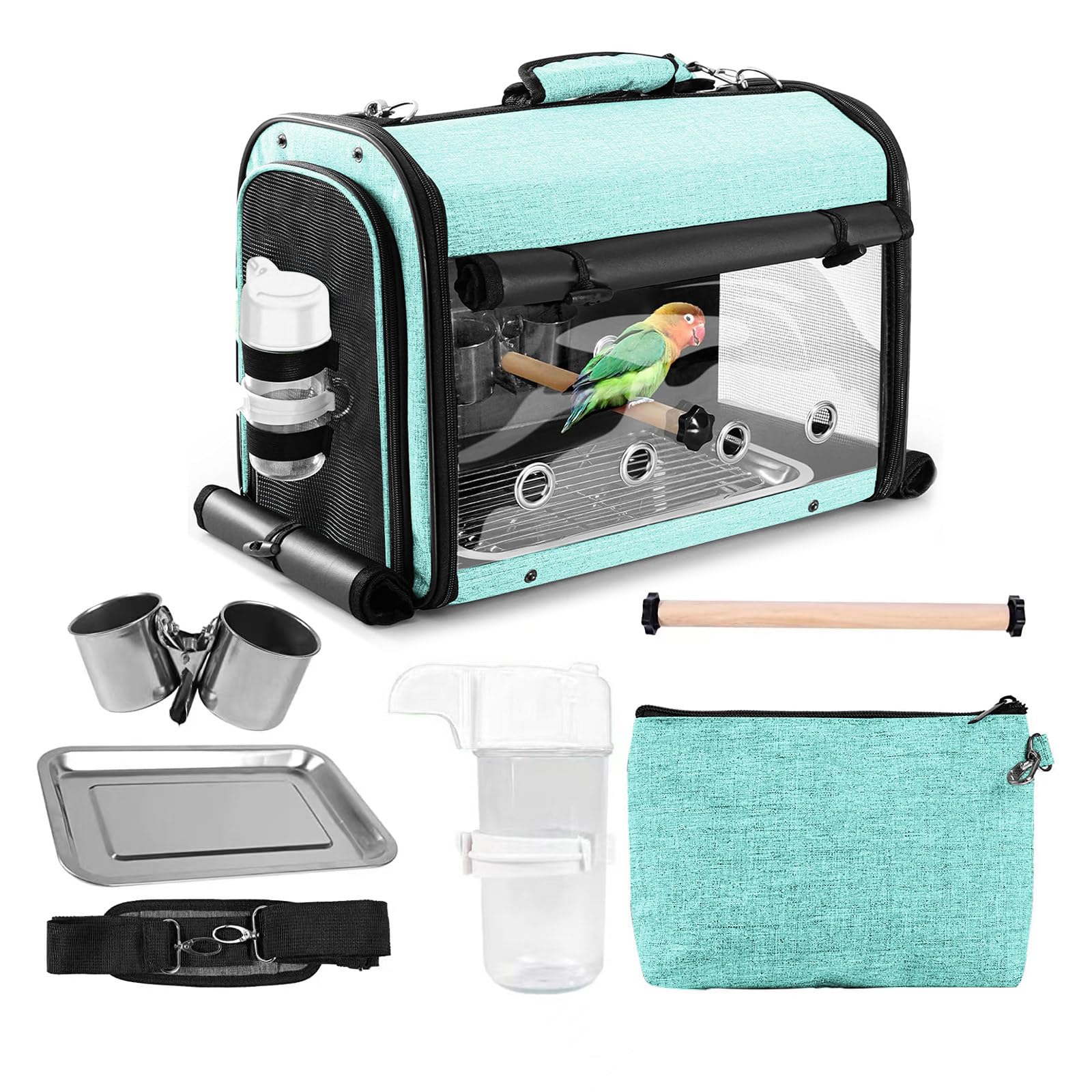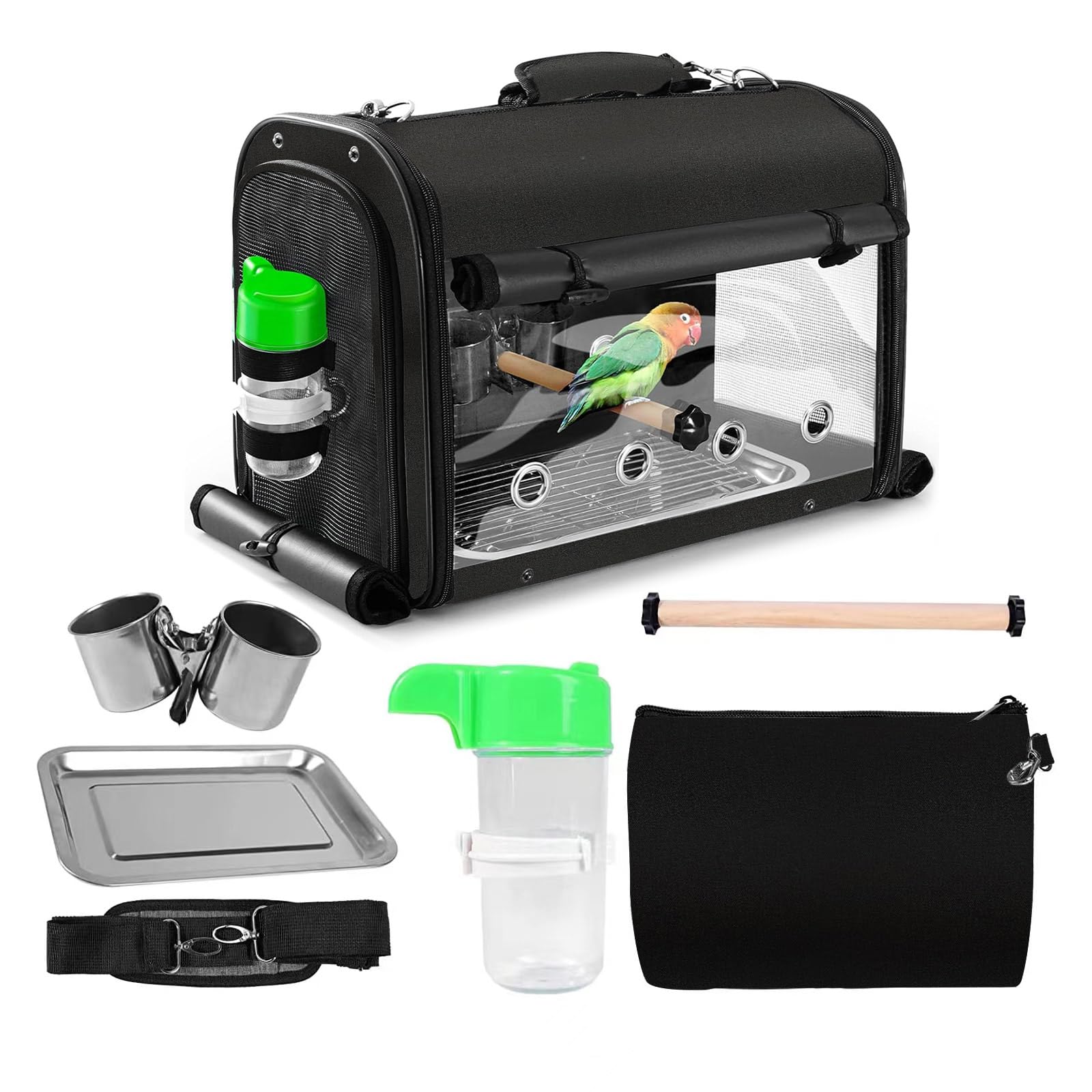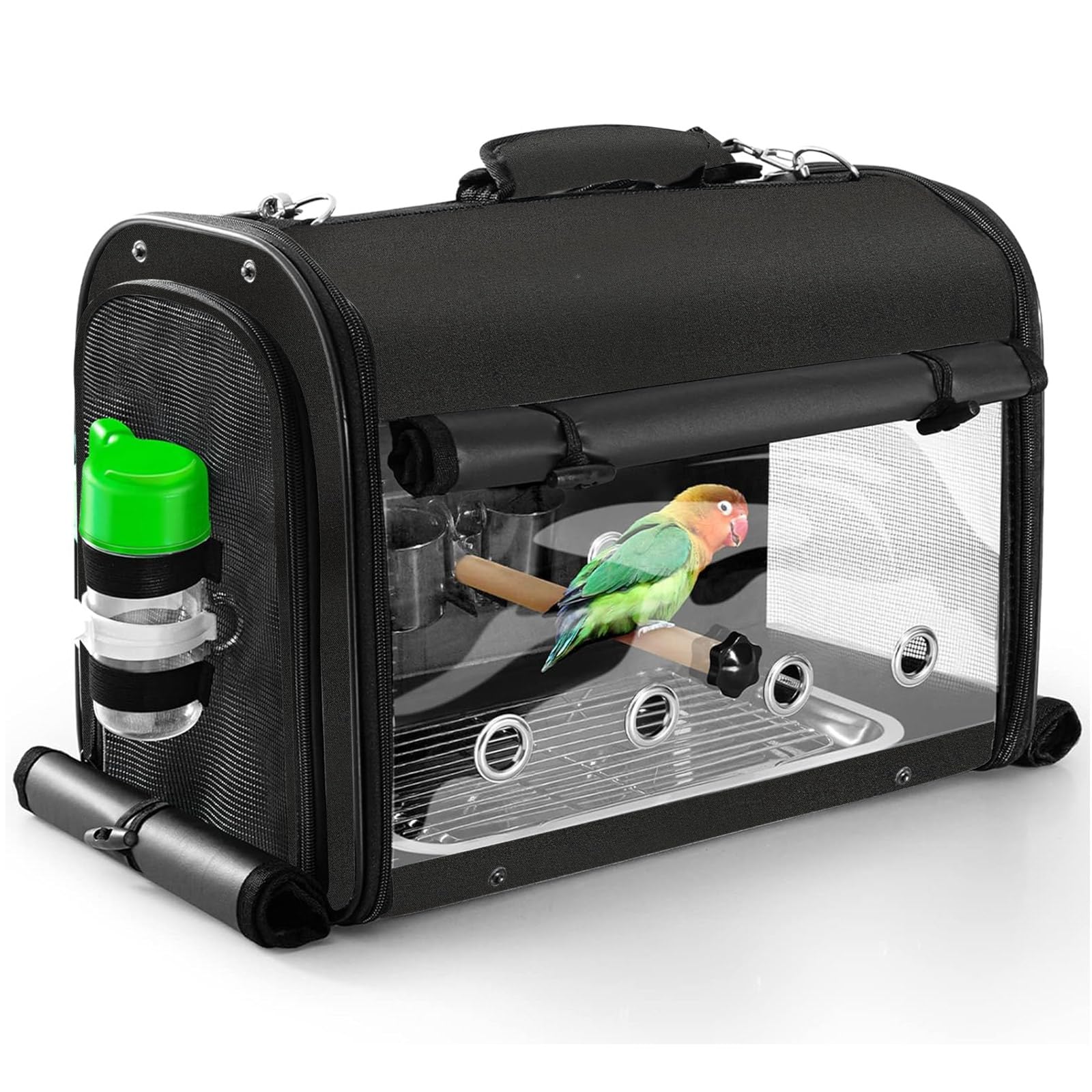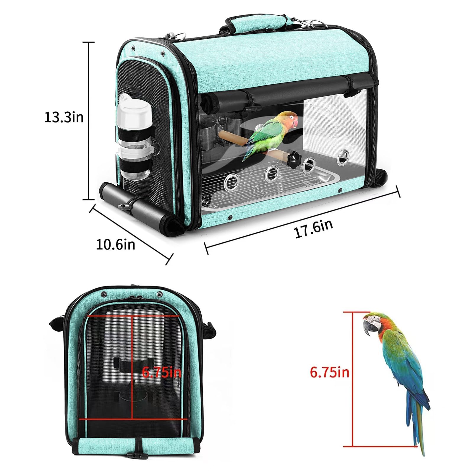 - 【FEEDING & PERCHING】There are removable bowls, a water bottle and two perches come with the bird carrier. It provides a comprehensive care and comfortable environment for birds.