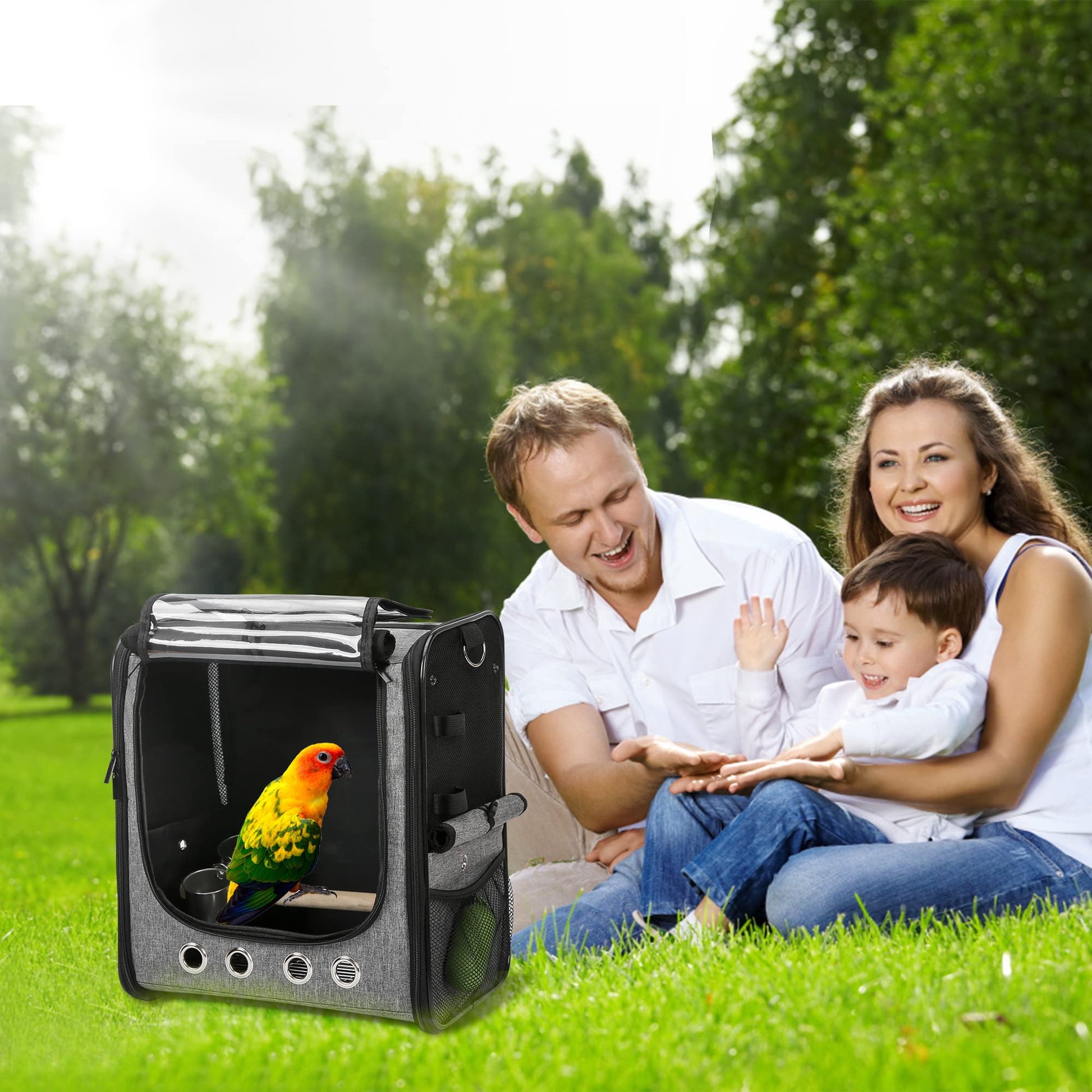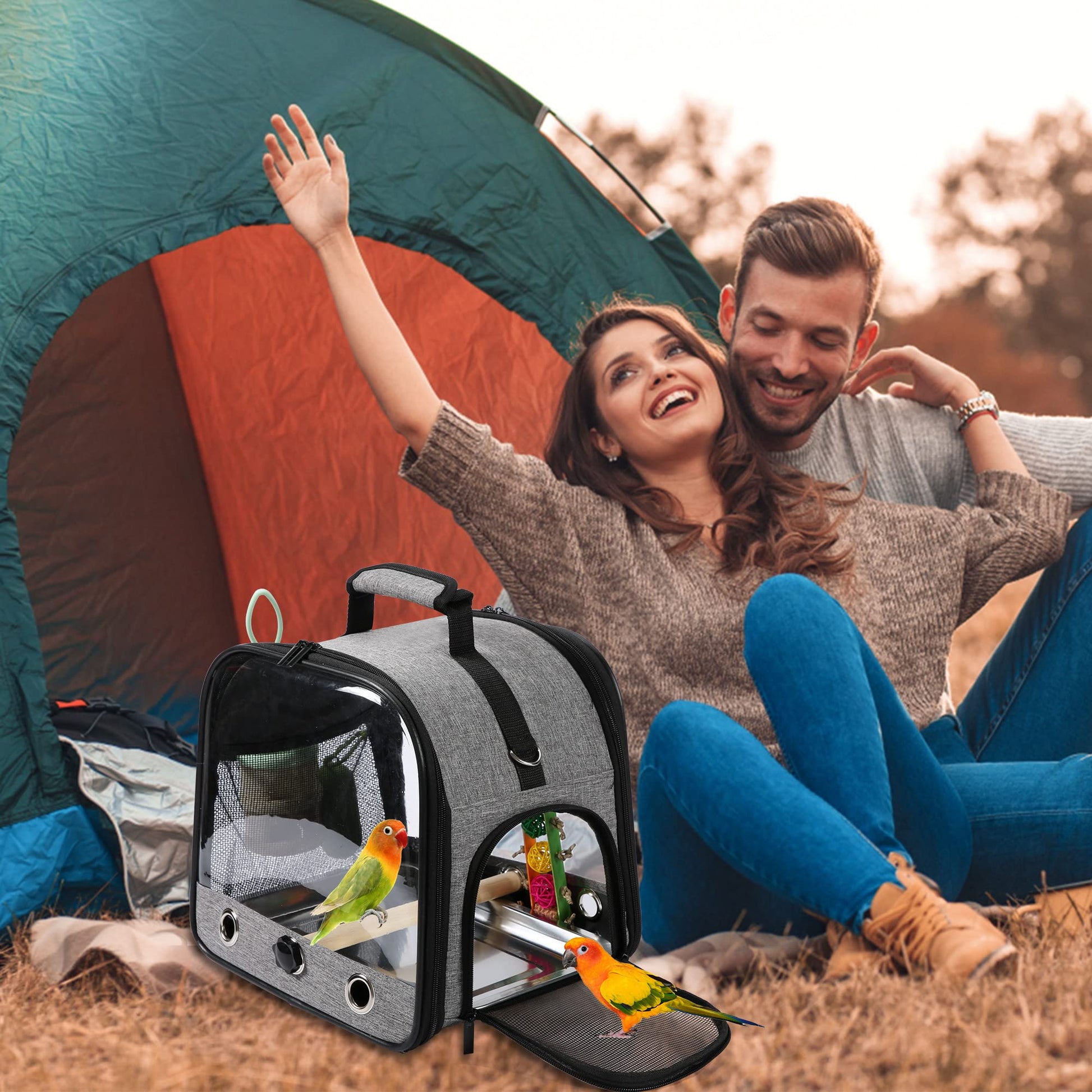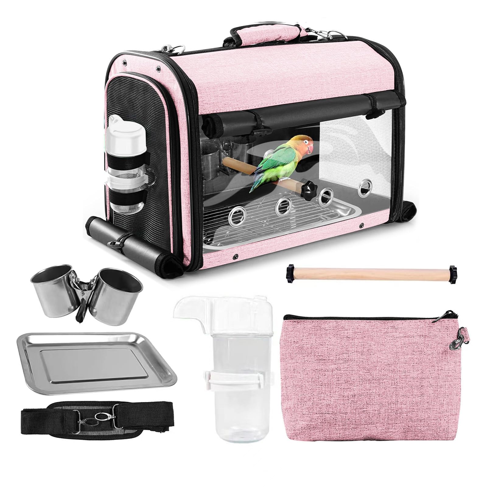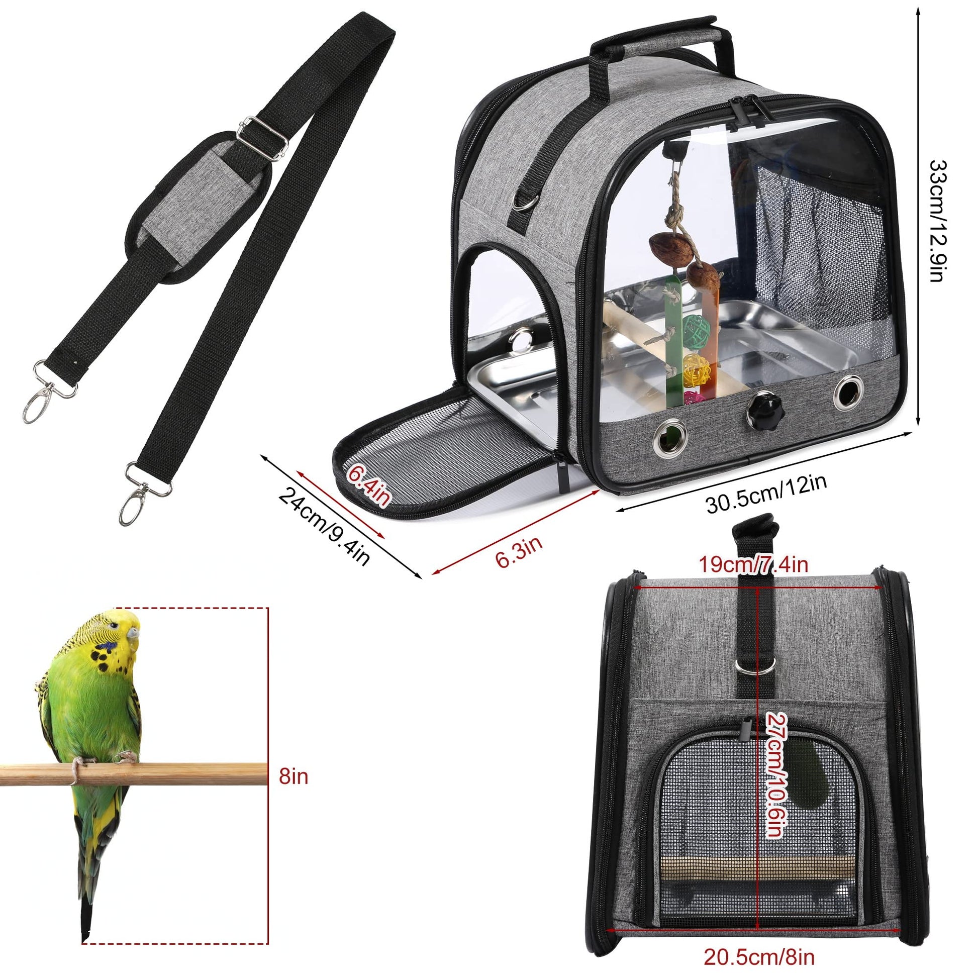 SUERTREE Bird Carrier Bag With Stand, Lightweight Backpack for Parrot, Portable Travel Cage, Pet Transparent Breathable Carrier