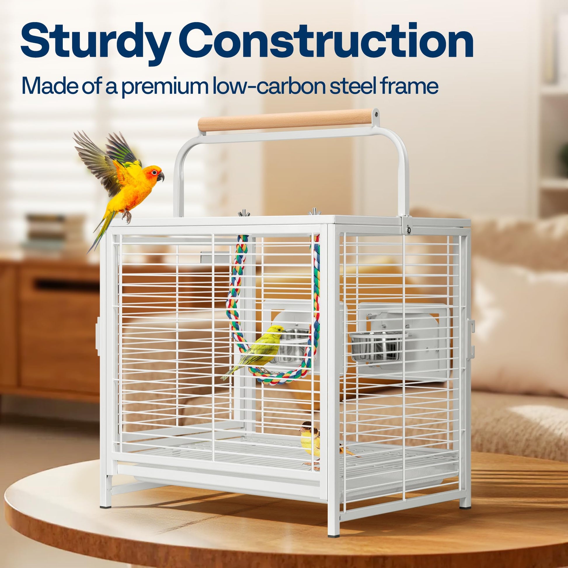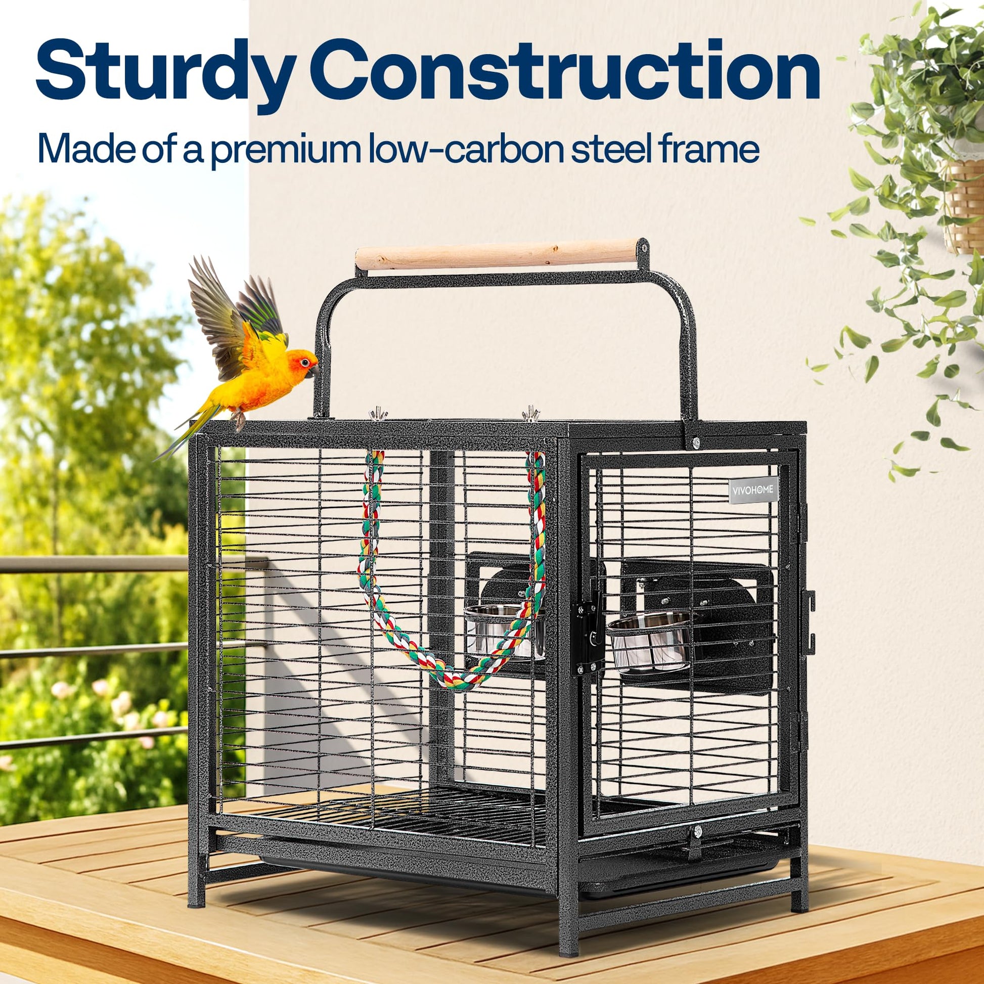 - STURDY CONSTRUCTION - Made of a premium low-carbon steel frame with a black coating that makes this bird cage sturdy, durable, even against playful birds; Guaranteed to resist wear and rust
