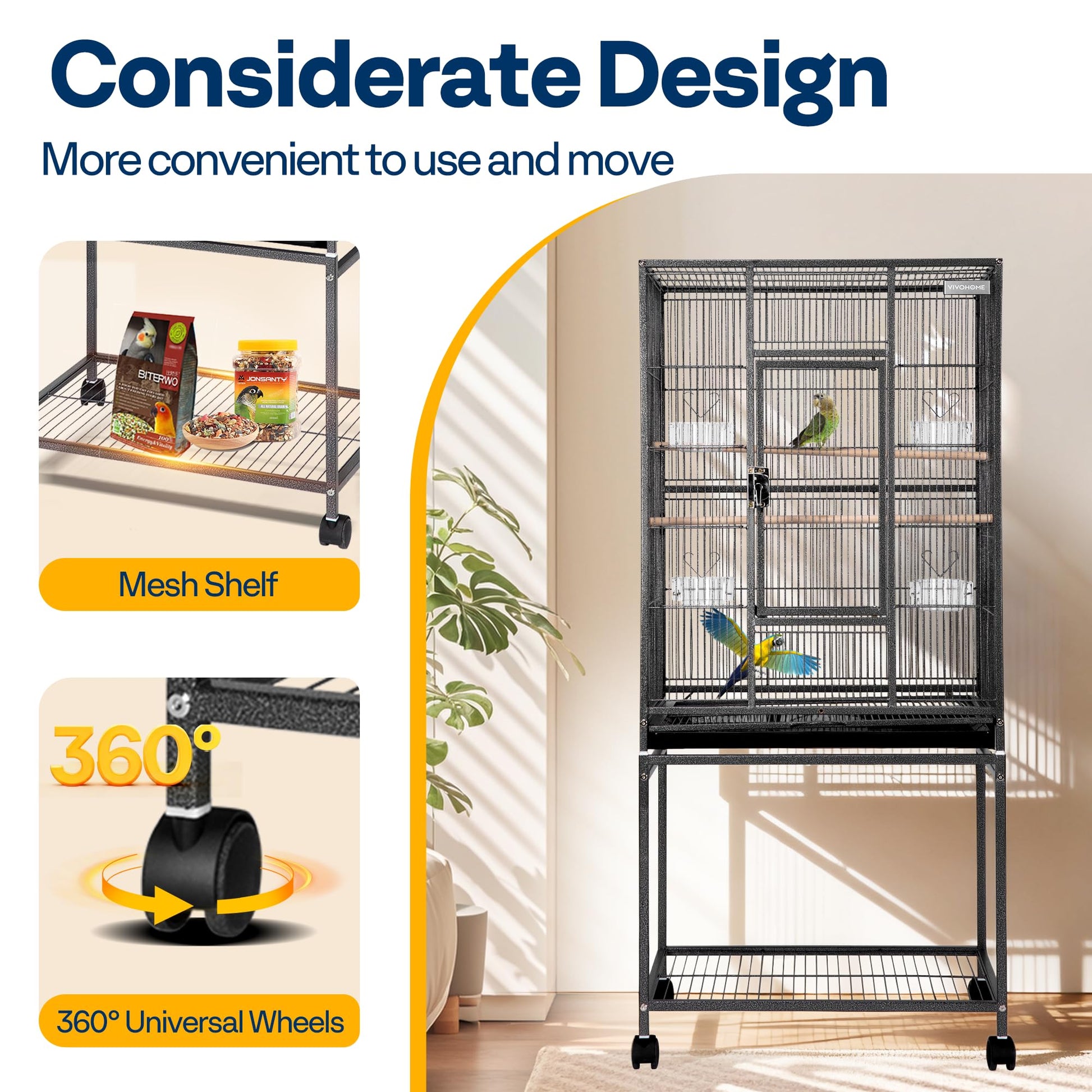 VIVOHOME 54 Inch Wrought Iron Large Bird Flight Cage with Rolling Stand for Parakeets Canaries Cockatiels Lovebirds Conures, Black