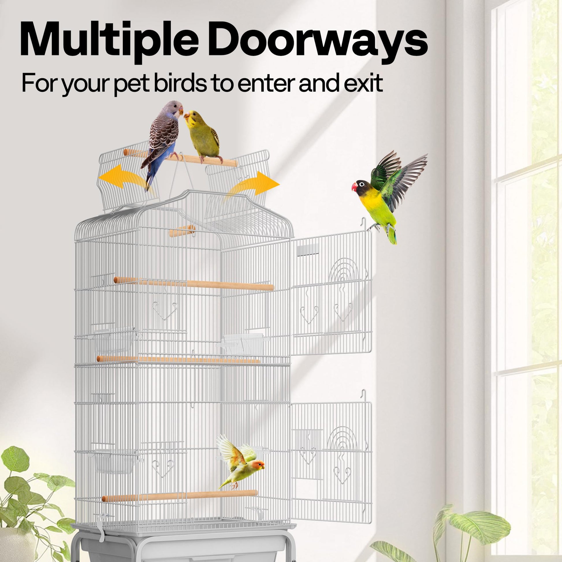 - MULTIPLE DOORWAYS - It is designed with 2 doorways for your pet birds to enter and exit; The top of the cage opens up and can be propped open with a wooden crossbeam for your birds to stand on; Traditional doors are located on the side of the cage