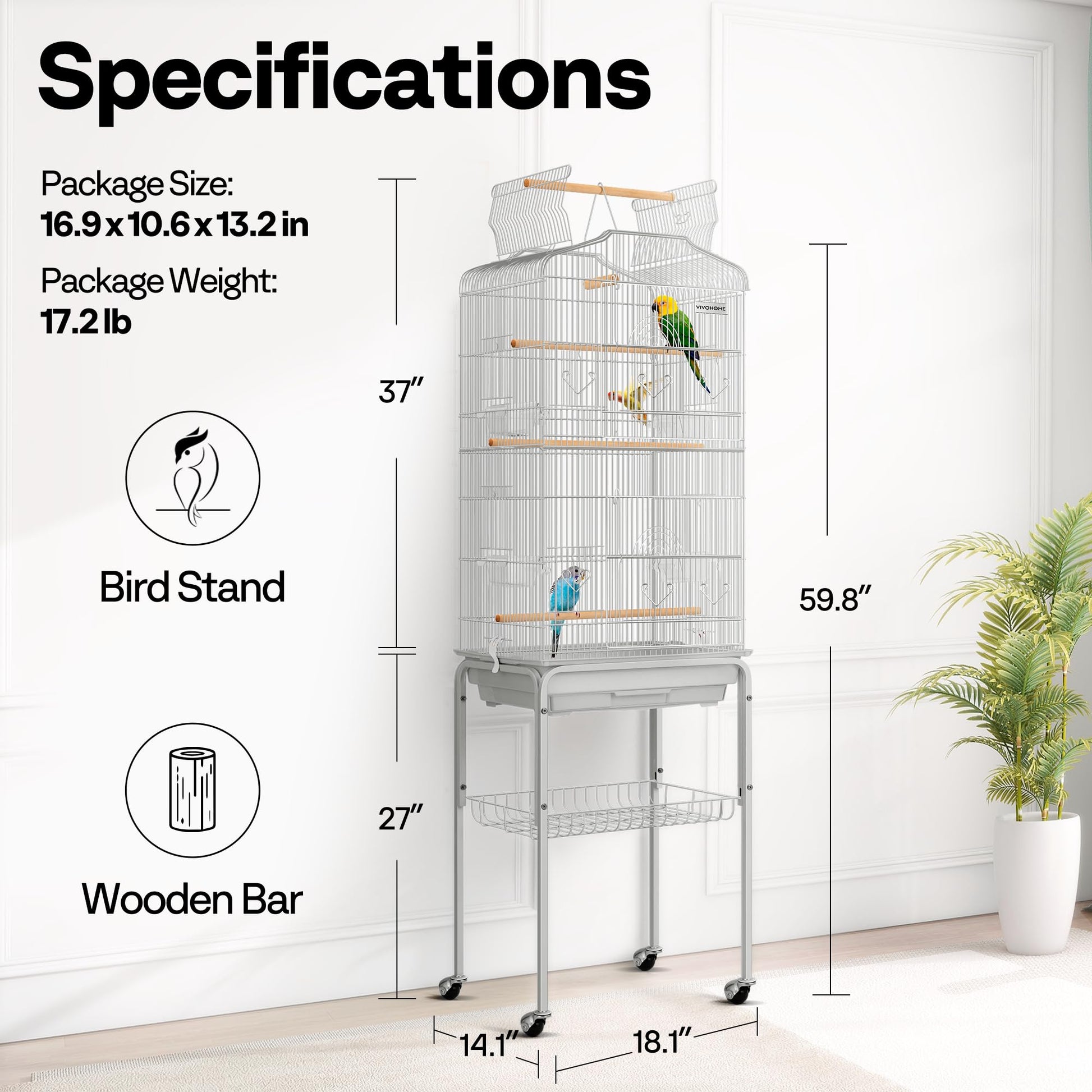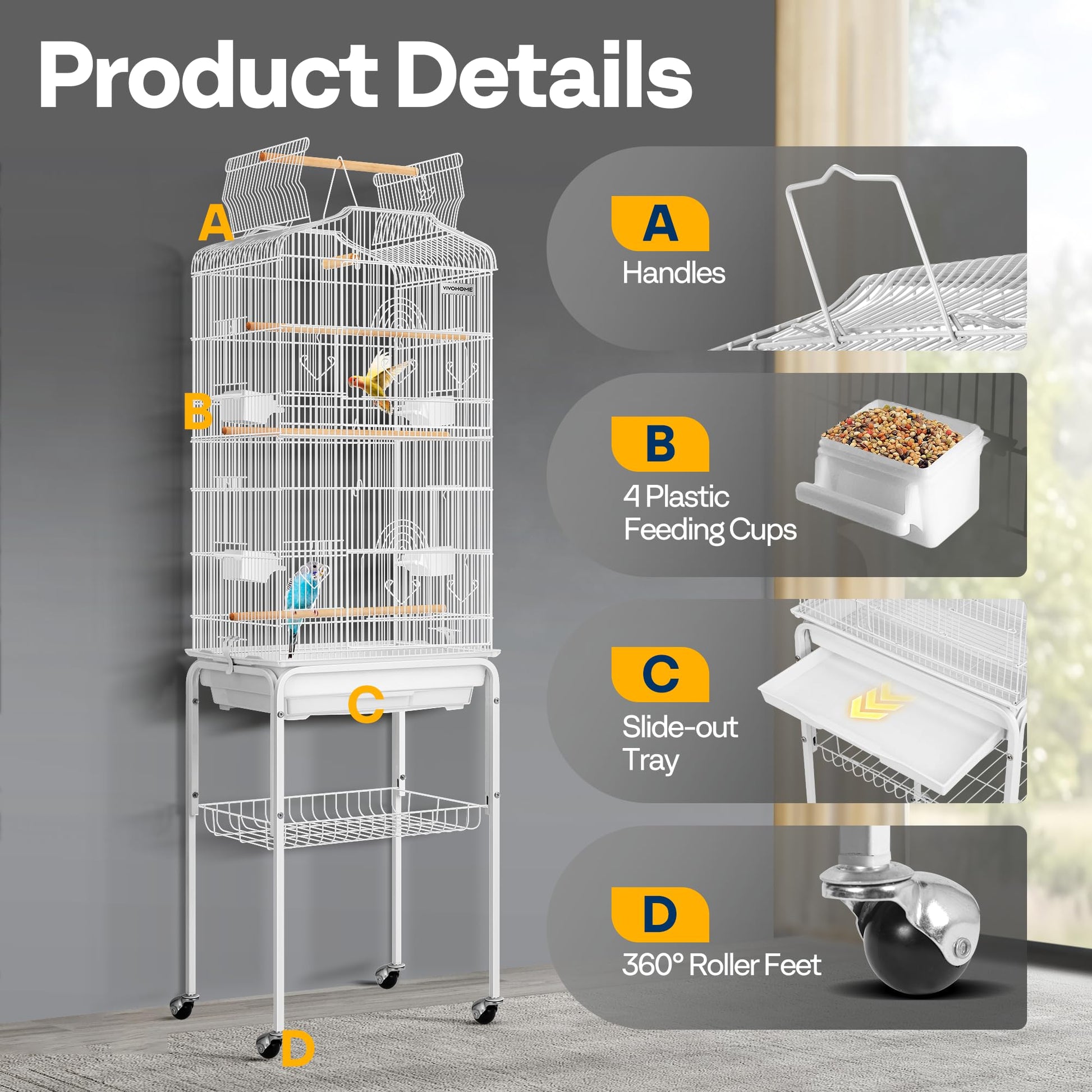 - STURDY CONSTRUCTION - Made of the high-quality iron frame with a black powder varnish, this birdcage is sturdy and durable, even against playful birds; It is designed with 4 caster wheels at the bottom, so you can move it anywhere you like, saving you effort
